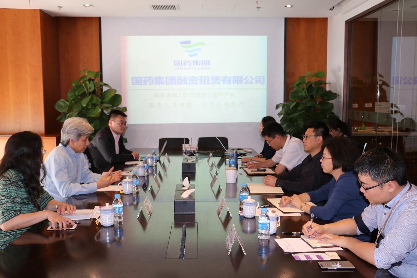 王國(guó)梁總裁介紹了國(guó)藥租賃的歷史沿革、發(fā)展前景及合作意向,未來(lái)五到六年內(nèi),中國(guó)資本市場(chǎng)藥品流通行業(yè)有一定利潤(rùn)空間??赏ㄟ^(guò)資本和產(chǎn)業(yè)主業(yè)并行的方式,用藥品流通利潤(rùn)投資醫(yī)院,希望與康健國(guó)際在醫(yī)療產(chǎn)業(yè)并購(gòu)、上市以及診所投資進(jìn)行合作,形成互補(bǔ)。