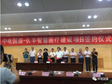 為響應(yīng)十九大“鄉(xiāng)村振興”戰(zhàn)略,推進(jìn)長豐縣鄉(xiāng)村智慧醫(yī)療建設(shè)與健康信息產(chǎn)業(yè)發(fā)展,2018年8月16日,長豐縣人民政府與中電國康數(shù)據(jù)科技有限公司正式簽署戰(zhàn)略合作協(xié)議。長豐縣副縣長石磊介紹長豐縣實(shí)際情況,并代表長豐縣縣政府與中電國康代表張涓總裁簽署戰(zhàn)略合作協(xié)議。長豐縣委書記許華、縣長黃韡、國藥租賃總裁王國梁、安徽信投總裁助理毛媛媛等領(lǐng)導(dǎo)共同見證。
