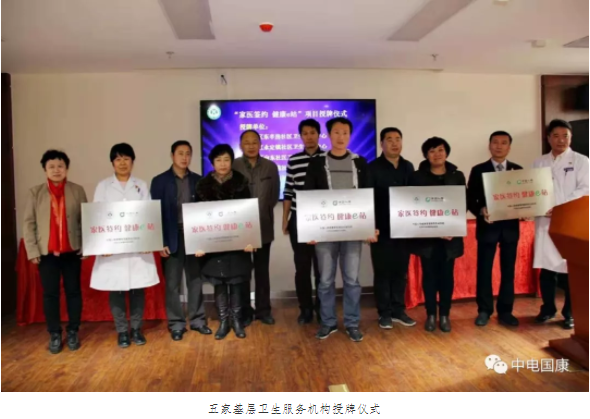 2018年11月26日,北京“家醫(yī)簽約健康e站”項(xiàng)目在門頭溝區(qū)正式啟動(dòng),北京市衛(wèi)健委對(duì)參與項(xiàng)目的5家社區(qū)衛(wèi)生服務(wù)機(jī)構(gòu)進(jìn)行授牌,促進(jìn)家庭醫(yī)生簽約,為門頭溝居民提供全方位全周期健康服務(wù)。出席會(huì)議的領(lǐng)導(dǎo)有:北京市衛(wèi)健委基層衛(wèi)生處主任朱文偉、北京社區(qū)健康促進(jìn)會(huì)會(huì)長(zhǎng)吳永浩、門頭溝區(qū)衛(wèi)計(jì)委副主任楊立新、北京社區(qū)健康促進(jìn)會(huì)項(xiàng)目專家組專家李月、門頭溝區(qū)社區(qū)衛(wèi)生服務(wù)管理中心主任張廣強(qiáng)、中國(guó)人壽保險(xiǎn)公司門頭溝支公司總經(jīng)理劉春海、中電國(guó)康總監(jiān)盧超。