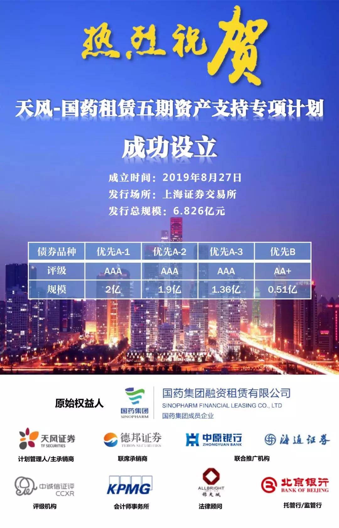熱烈祝賀國藥租賃五期資產(chǎn)支持專項(xiàng)計(jì)劃成功設(shè)立