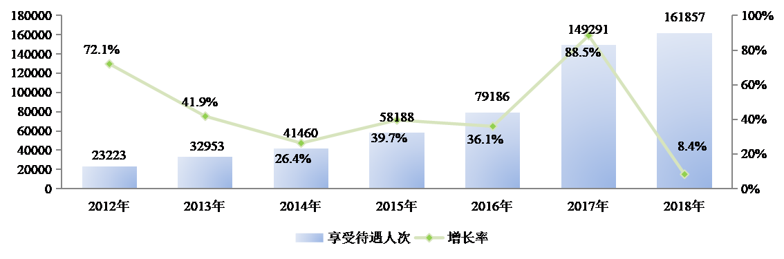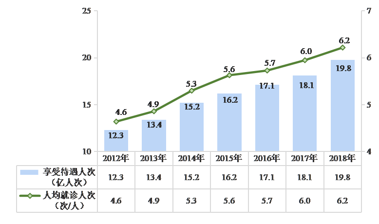 2012-2018年居民醫(yī)保享受待遇人次