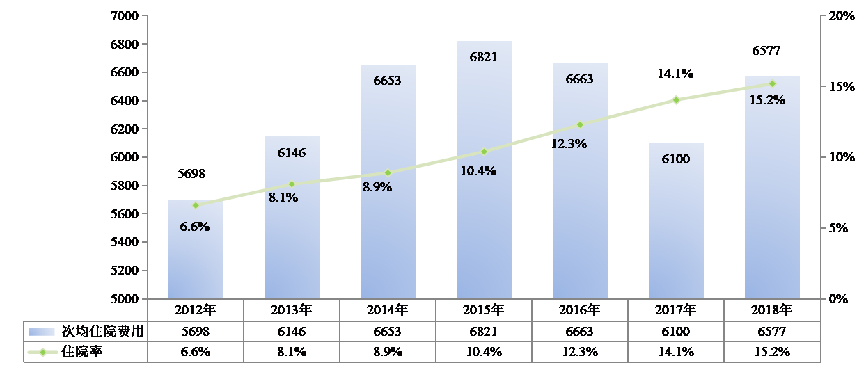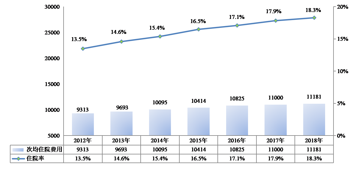 2012-2018年居民醫(yī)保次均住院費用和住院率