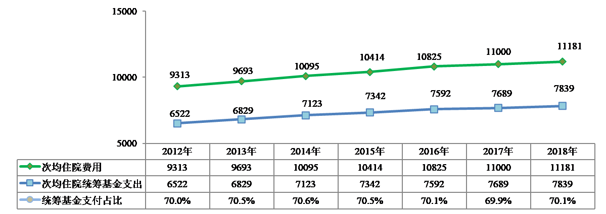 2012-2018年職工醫(yī)保次均住院費用和統(tǒng)籌基金支出