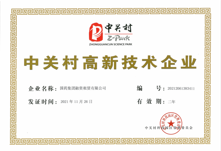 近期,國(guó)藥集團(tuán)融資租賃有限公司(以下簡(jiǎn)稱(chēng)“國(guó)藥租賃”)再次榮獲北京市租賃行業(yè)協(xié)會(huì)、北京企業(yè)評(píng)價(jià)協(xié)會(huì)“北京市信用AA級(jí)企業(yè)”及中關(guān)村科技園區(qū)管理委員會(huì)“中關(guān)村高新技術(shù)企業(yè)”的認(rèn)定。