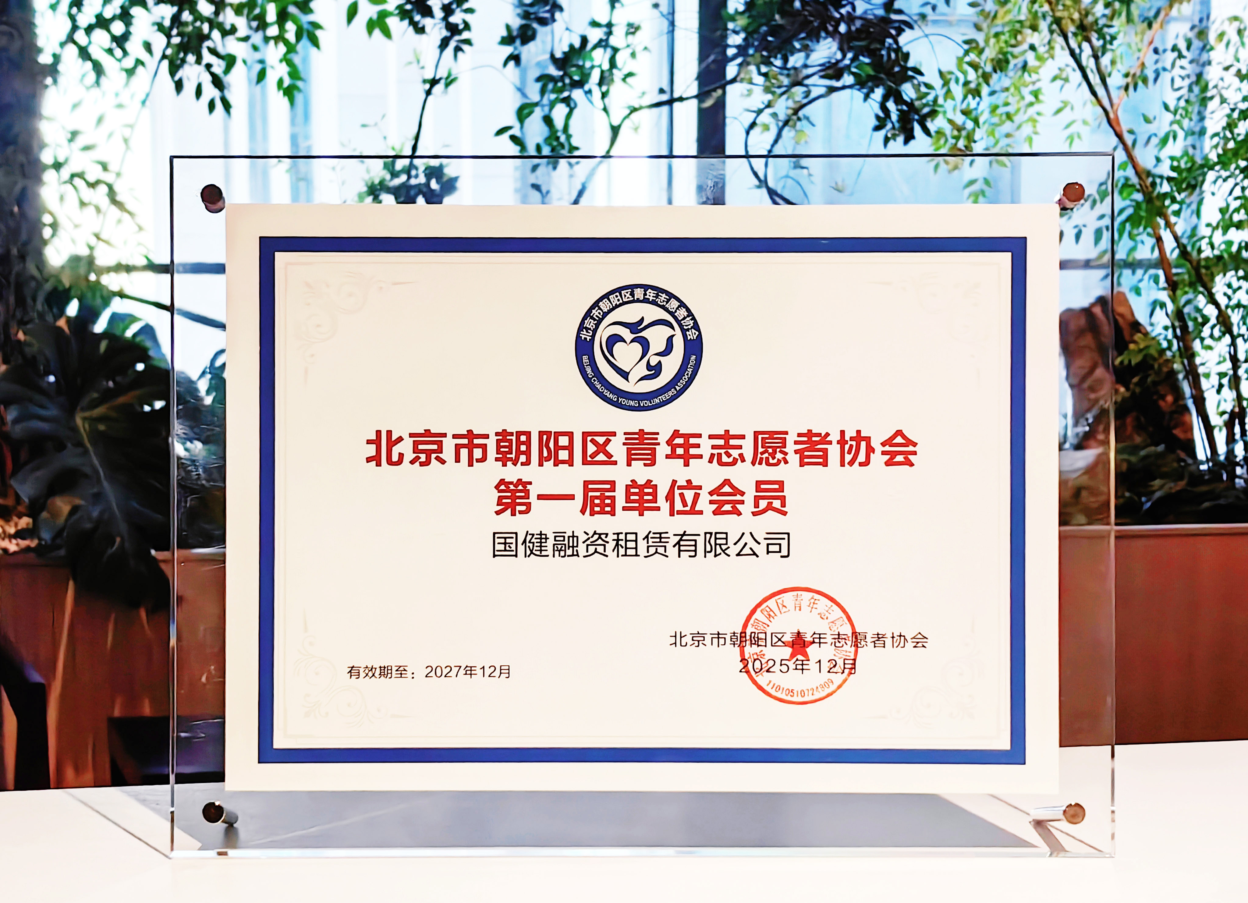 國(guó)健融資租賃有限公司入選北京市朝陽(yáng)區(qū)青年志愿者協(xié)會(huì)會(huì)員單位