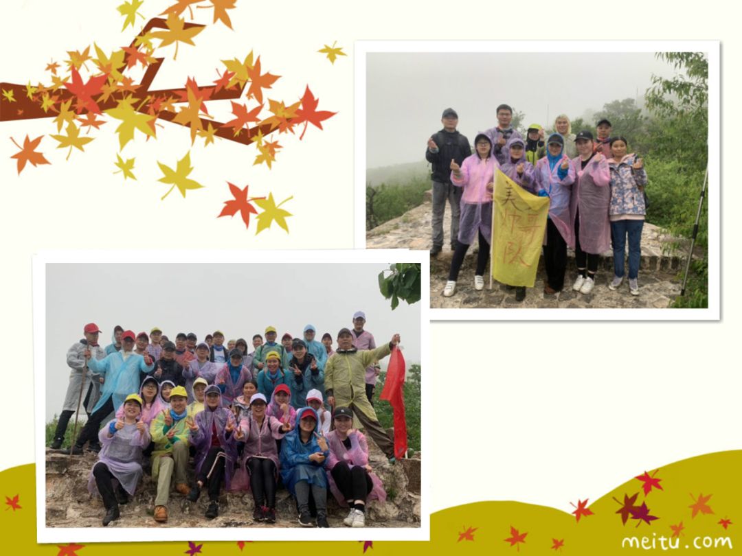 下一個站點長城山頂是我們此次團建的最終目的地。此時的雨勢來的更加猛烈,道路變得濕滑難行。然而各組隊員都卯足了勁,在和隊友的相互鼓勵下堅持向山頂沖刺。想必既是為了團隊的榮譽,也是出于自己心中不服輸?shù)木瘛T谶@段旅程中,即使競爭時刻存在,體會到登頂?shù)牟灰?,我們也真心地為每一位伙伴加油喝彩?br />