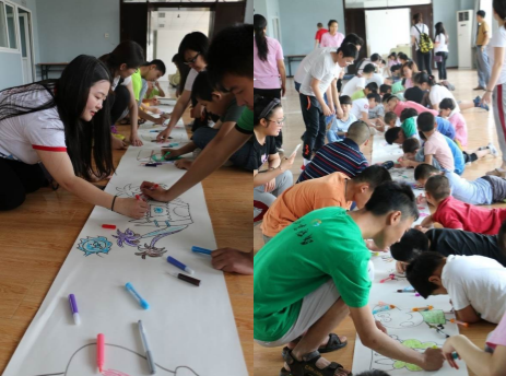 在與孩子們共同完成的“百米畫卷”活動(dòng)中,隨著公司愛心人士精心繪制的卡通簡筆畫卷徐徐展開,現(xiàn)場歡呼聲一片。孩子們?cè)诶蠋熀椭驹刚邆兊囊龑?dǎo)下,和他們一起拿起手中的彩筆,尋找到喜歡的形象后飛快地涂抹上色,專注極了。起初,有些孩子還帶點(diǎn)怯懦,慢慢地,在志愿者的鼓勵(lì)和帶動(dòng)下也嘗試了起來,畫得越來越投入,和身邊的志愿者們不再陌生,展開了天真的笑臉,有的孩子不但作了自我介紹還在畫卷上寫下了名字,還有的孩子作畫意愿被極大地激發(fā),甚至主動(dòng)要求多次換筆調(diào)色。就這樣,黑白卷軸在小小畫筆的共同點(diǎn)綴下,一點(diǎn)點(diǎn)變得多彩和豐滿,就像是載滿了星星孩子們彩色的夢(mèng)!活動(dòng)最后,每位志愿者還為孩子們送上了一份精心準(zhǔn)備的 畫筆和圖冊(cè)。