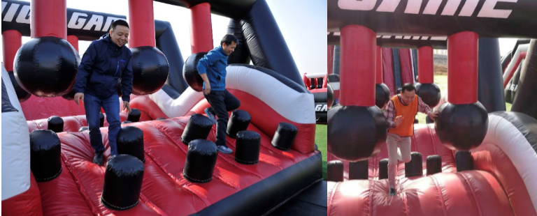 翌日上午,我們引進了創(chuàng)意無限的HIGH GAME城市障礙賽,大型主題氣墊關卡徹底顛覆無趣印象的極酷玩法,全方面挑戰(zhàn)我們的新鮮感與個人運動極限。面對這些巨型的沖關氣模,我們經(jīng)受住了苛刻的極限考驗,全體隊員都努力克服重重關卡,順利到達終點。