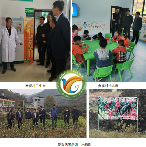 會后,陳朋副總裁一行在鄧常委、肖副縣長的陪同下,參觀了村衛(wèi)生室、村托兒所,了解本地的基本醫(yī)療及教育情況,與兩個村子的村書記訪談交流、調(diào)研參觀茶園、桃園等,了解兩個村子扶貧攻堅及鄉(xiāng)村振興的具體成果。