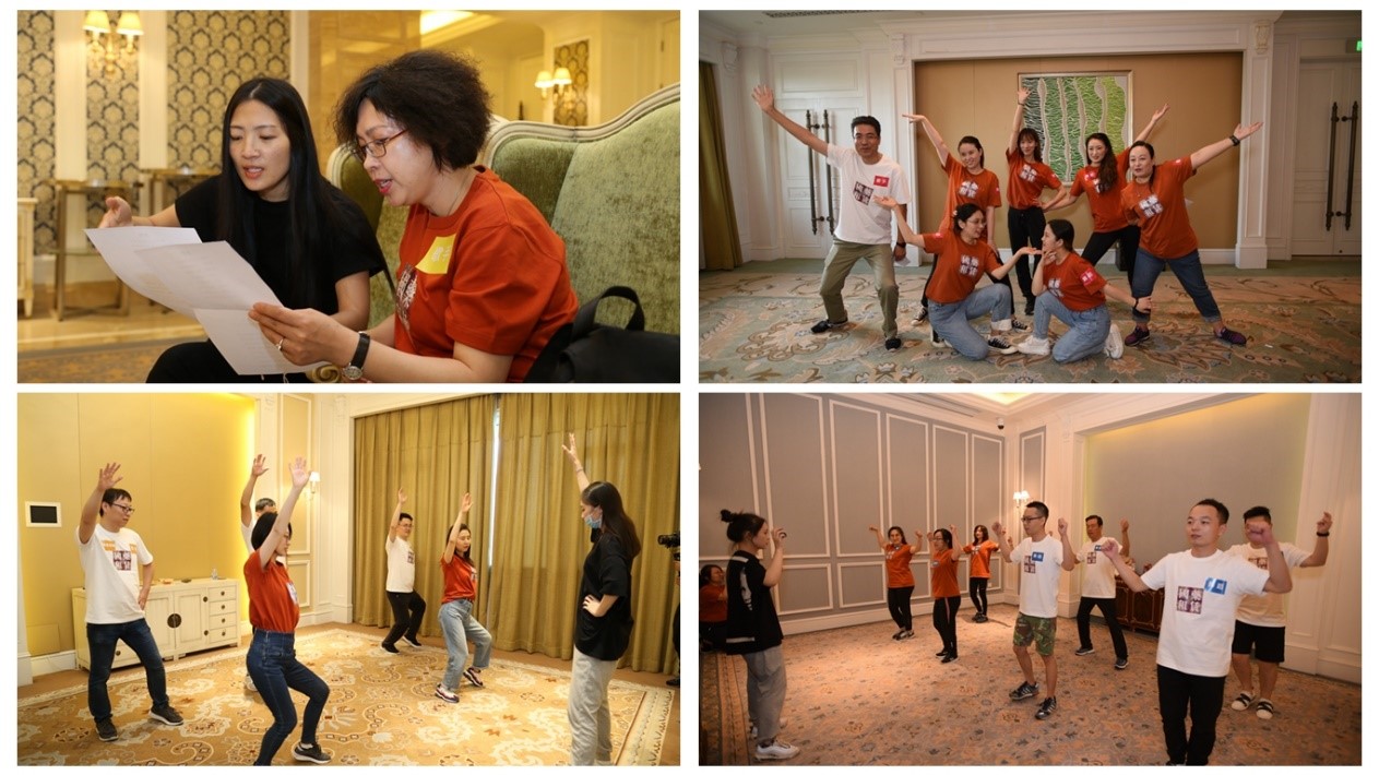 活動(dòng)項(xiàng)目從源自西方的“即興喜劇”開啟,目標(biāo)是在沒有任何劇本的條件下,團(tuán)隊(duì)成員僅憑默契的配合,就可以上演出一場(chǎng)令人捧腹的喜劇。通過(guò)兩位專業(yè)演員的舞臺(tái)示范,以及分組后深入淺出的互動(dòng)體驗(yàn),學(xué)員們腦洞大開,充分釋放天性,笑語(yǔ)不斷。