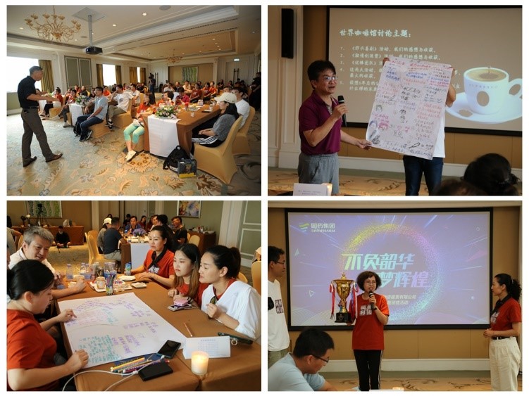 最后的復(fù)盤,我們引進(jìn)了世界咖啡-創(chuàng)造集體智慧的溝通分享方法,設(shè)置五個(gè)不同話題的咖啡館,除館主以外的其他人員自發(fā)選擇,參與每個(gè)話題的討論。大家彼此間充分交流思想、表達(dá)觀點(diǎn),最終用集體的智慧凝練出兩天的收獲與心得,并一同展望國(guó)藥租賃五年后的輝煌未來(lái)。