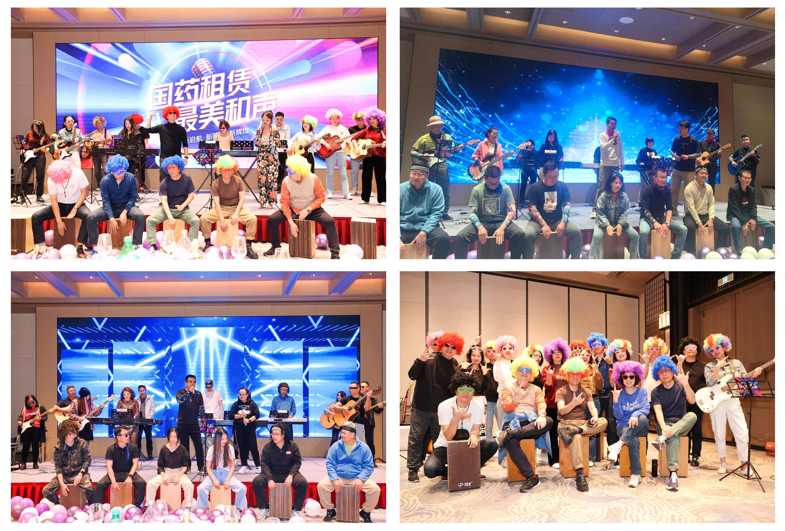 21日下午,在大家的期待中,激動(dòng)人心的國(guó)藥租賃最美和聲演唱會(huì)正式開場(chǎng)。大家分別組成三支樂隊(duì),主唱歌手、樂器演奏大師全部登場(chǎng)各展才藝,經(jīng)過3個(gè)小時(shí)的緊張排練,各組樂隊(duì)以飽滿的熱情、新穎的造型登臺(tái)演出,三首嗨翻全場(chǎng)的搖滾曲目接連唱響,展現(xiàn)了國(guó)藥租賃人活力四射的另一面,讓大家耳目一新。