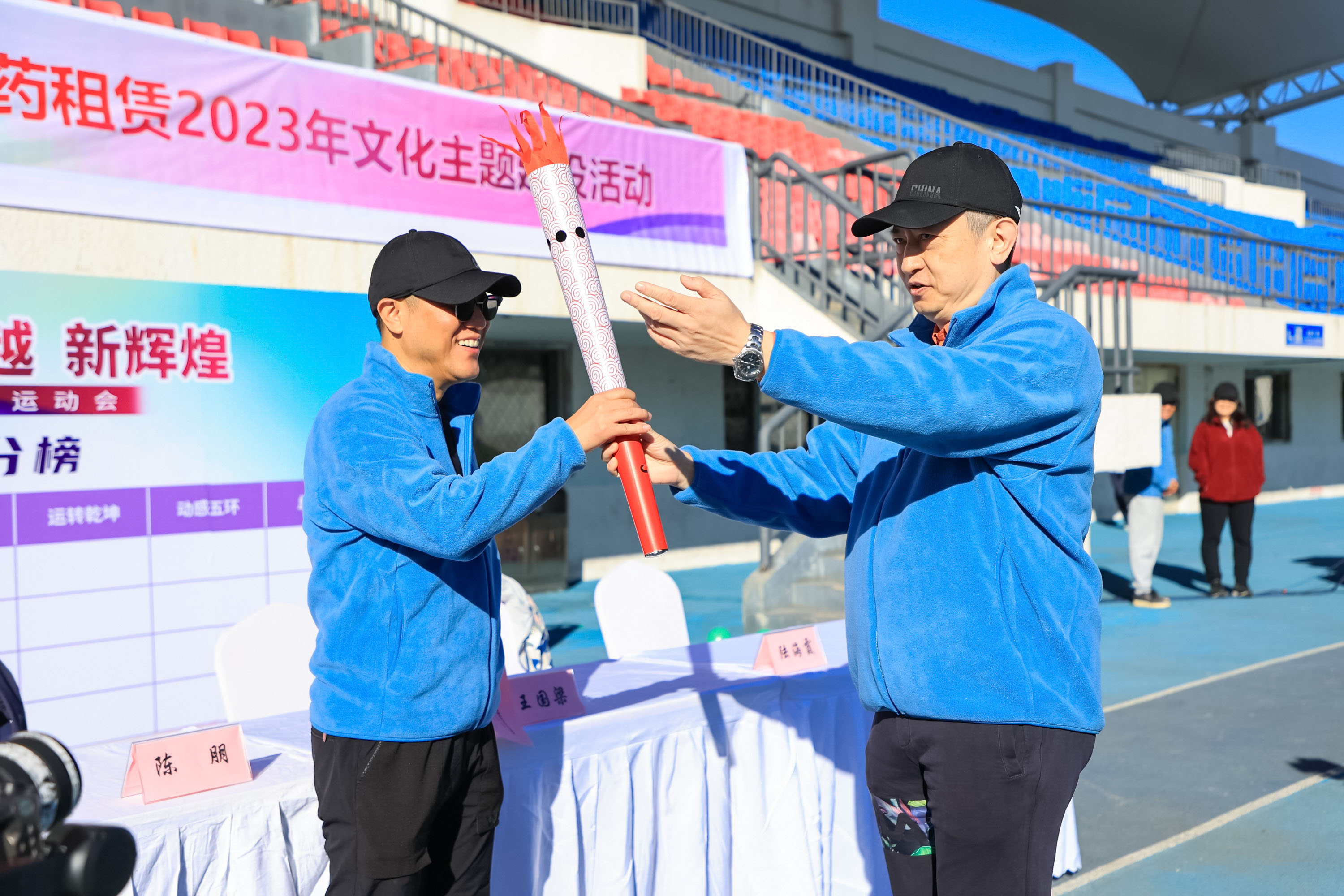 火炬?zhèn)鬟f儀式上,由優(yōu)秀員工組成的火炬?zhèn)鬟f隊(duì)伍將火炬一一傳遞、最后由國(guó)藥租賃工會(huì)主席李銳將火炬?zhèn)鬟f至王國(guó)梁總經(jīng)理手中。燃燒的火焰、每次的傳遞,象征著國(guó)藥租賃的薪火相傳、生生不息。