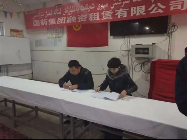 2017年12月17日至18日,國(guó)藥租賃副總裁陸海霞、副總裁賀志向一行赴新疆喀什地區(qū),代表公司與巴楚縣衛(wèi)生局簽訂了捐贈(zèng)協(xié)議,在該縣轄內(nèi)闊納巴扎村和協(xié)開(kāi)爾巴格村衛(wèi)生室揭牌儀式上,捐贈(zèng)了一批藥品和醫(yī)療器械。